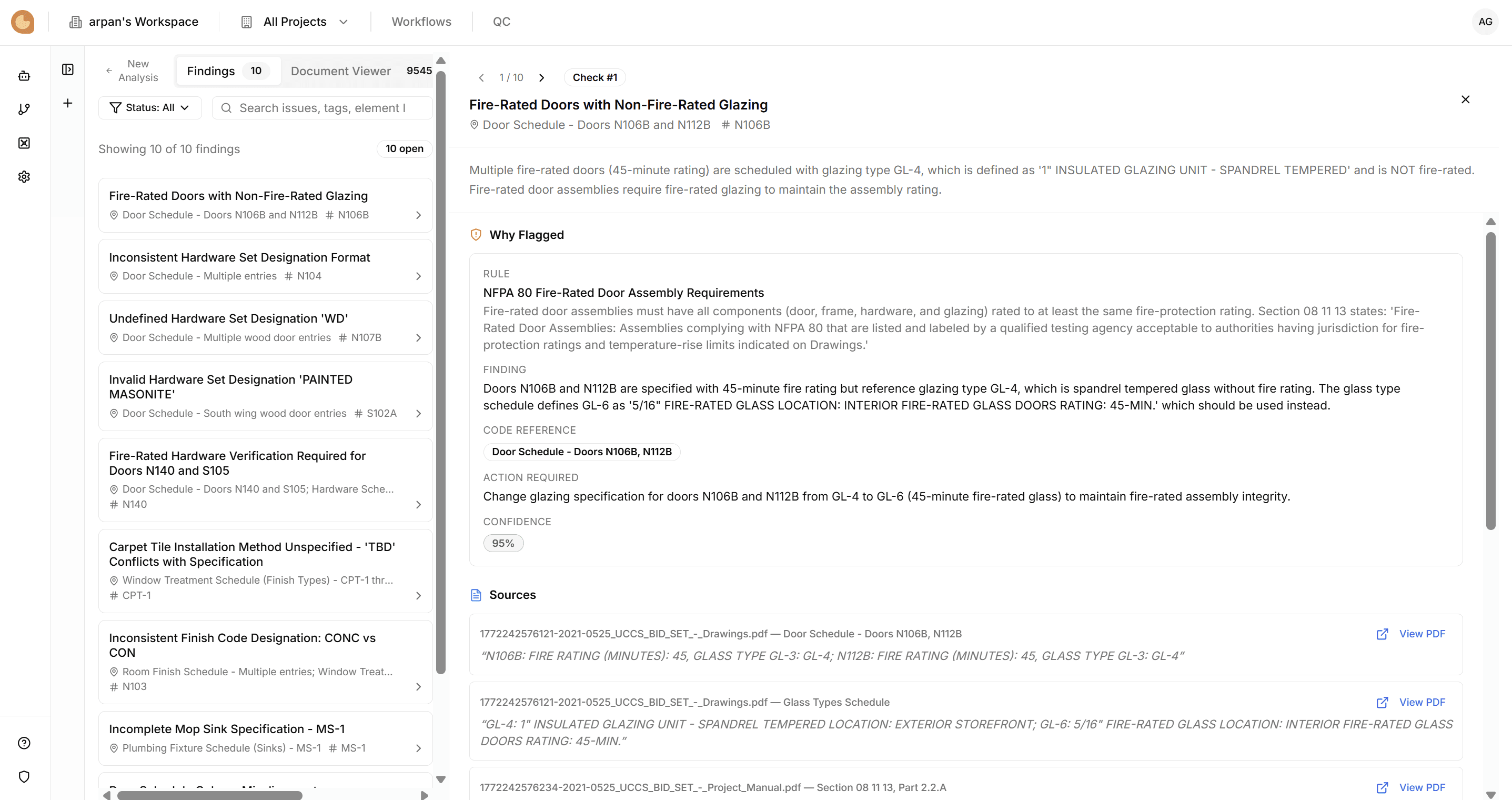 Tuuli ties every potential issue to its source, whether that's a code clause, a firm standard, or a conflicting detail on another sheet. Your team gets the context to resolve it fast and the documentation to back up every decision.